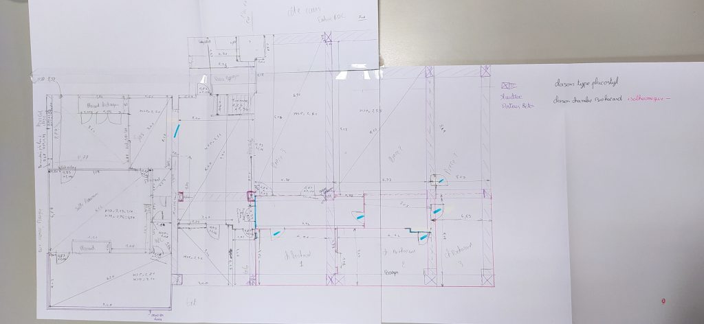 - Dessiner à main levée et schématiquement la répartition des pièces, des ouvertures, et des élèments structurels